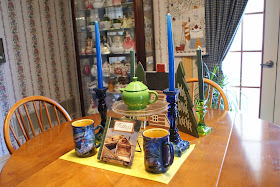I am so delighted to use these two mugs! Matt, a friend of the family, gave these to us and I have been saving them for this tablescape. They are from Bennett Spring State Park where his family has had a retreat and campgrounds. Matt works for a TV station, KSPR channel 33 ABC news, in Springfield, Mo. so if you are in the viewing area please watch for him on the Nightly News.